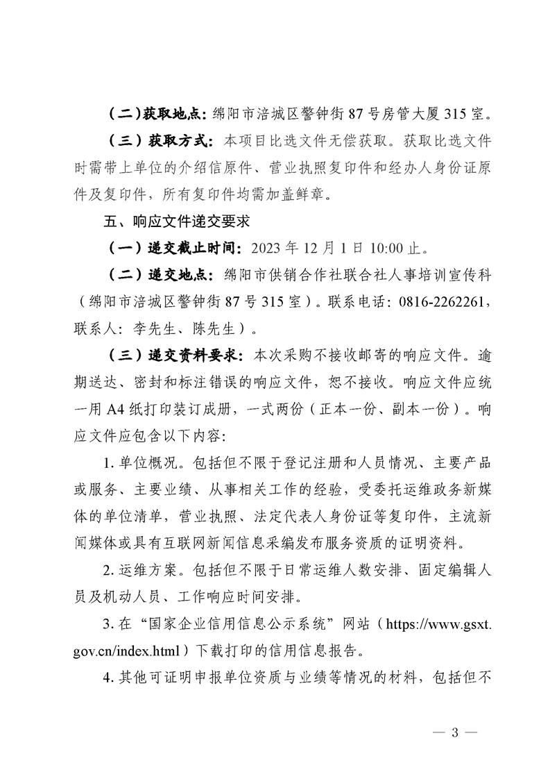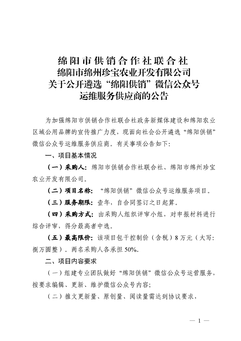 綿陽市供銷合作社聯(lián)合社關(guān)于公開遴選“綿陽供銷”微信公眾號(hào)運(yùn)維服務(wù)供應(yīng)商的公告