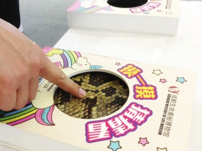 環(huán)顧展區(qū),從威風(fēng)凜凜的狼到憨態(tài)可鞠的企鵝,再到呆萌可愛的小獅子、張牙舞爪的魔鬼魚……呈現(xiàn)在參觀者眼前的每一件標(biāo)本都經(jīng)過巧妙設(shè)計(jì),對(duì)動(dòng)物身體進(jìn)行接近自然的造型,帶來直觀的審美效應(yīng)。斑駁的蟒蛇皮、凹凸的穿山甲鱗片、柔軟的狐貍毛……十余種由動(dòng)物皮毛制成的標(biāo)本盒讓參觀者能夠親手“觸摸”這些平時(shí)遙不可及的野生動(dòng)物,有助于宣傳瀕危野生動(dòng)物保護(hù),同時(shí)提高人們的環(huán)保意識(shí)。