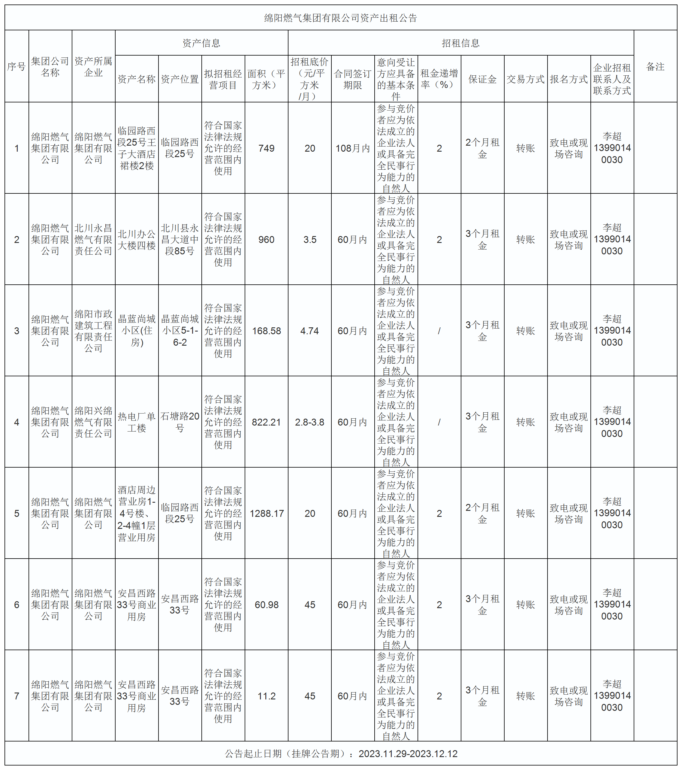 綿陽燃?xì)饧瘓F(tuán)有限公司資產(chǎn)出租公告