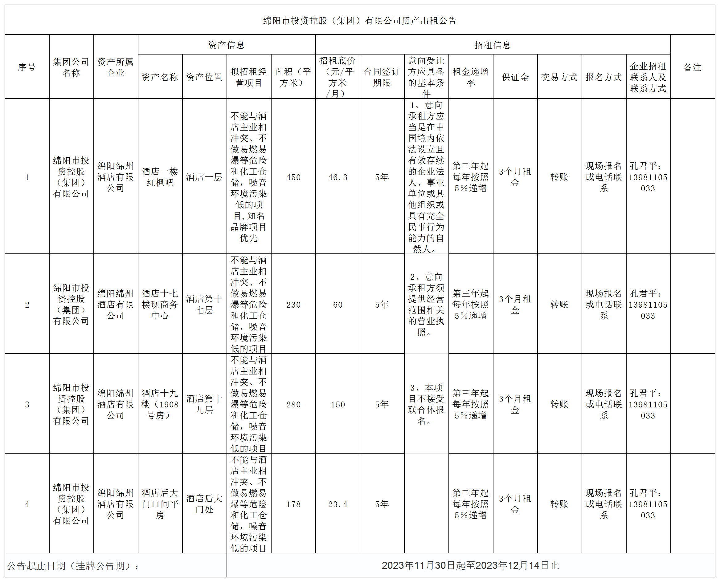 綿陽市投資控股(集團(tuán))有限公司資產(chǎn)出租公告