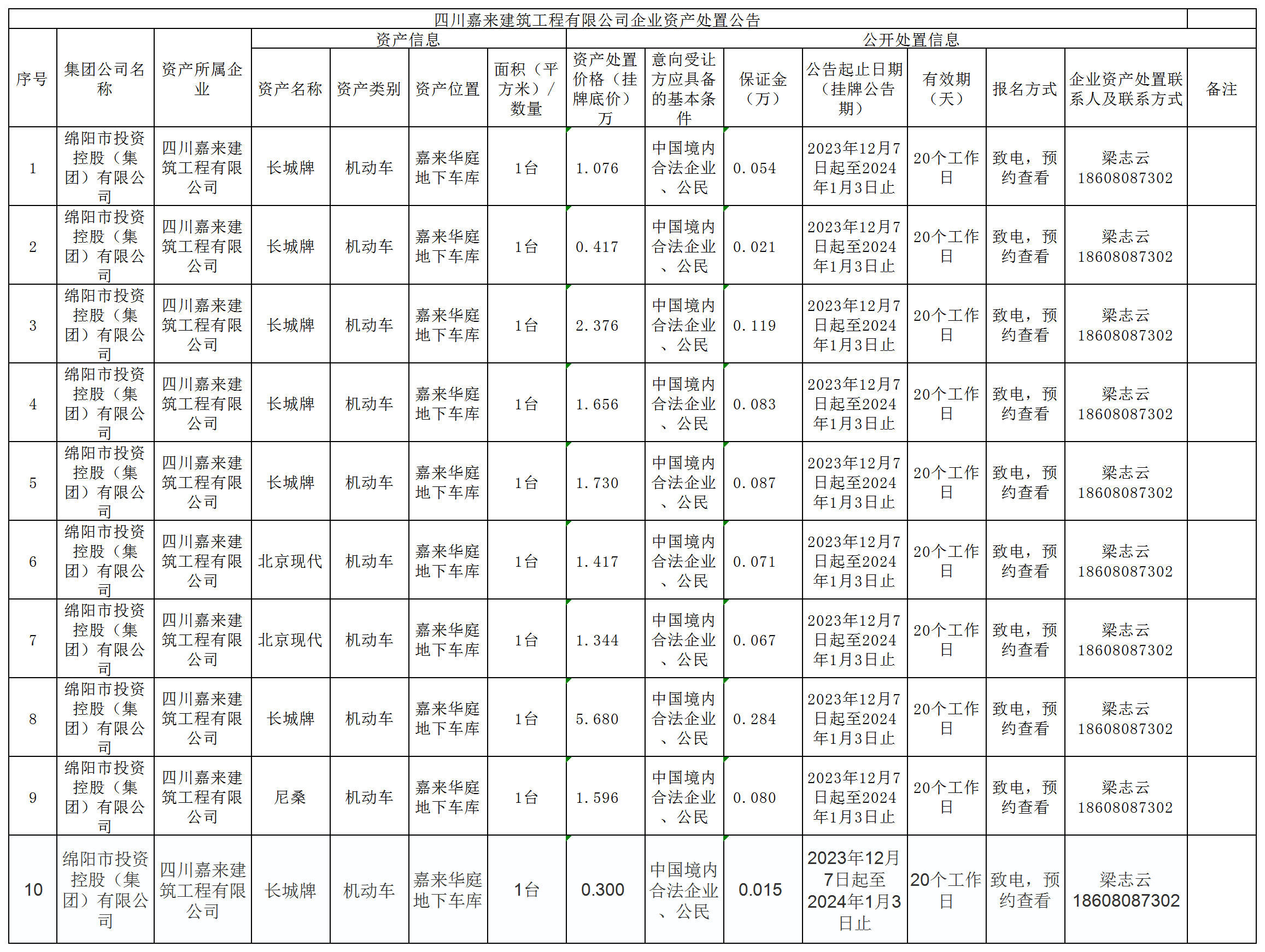 四川嘉來(lái)建筑工程有限公司企業(yè)資產(chǎn)處置公告
