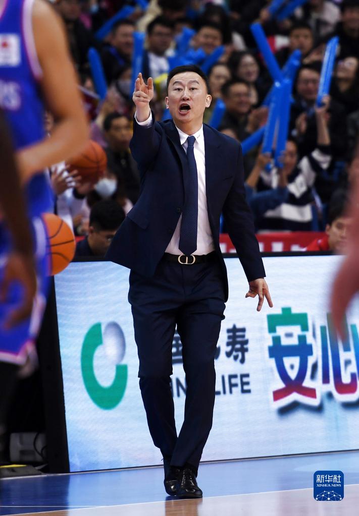 3月6日,青島國信水產(chǎn)隊主教練劉維偉在場邊指揮。新華社記者 李紫恒 攝
