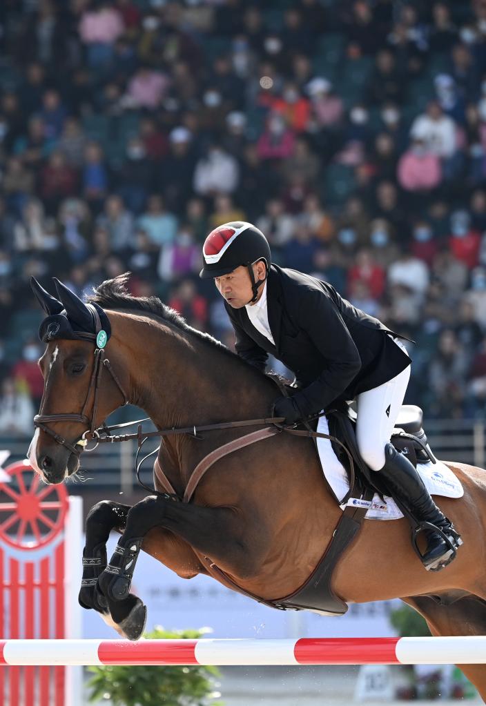27日進(jìn)行的是兩輪場地障礙賽的比拼。個(gè)人賽較量中,首日過后就排名第一的喬侖巴特和賽馬“恩和”延續(xù)良好表現(xiàn),在次日越野賽完成“零罰分”后,場地障礙賽中兩度實(shí)現(xiàn)“零罰分”,最終成功榮膺個(gè)人賽冠軍。代表廣東隊(duì)出戰(zhàn)的國家隊(duì)選手梁銳基和賽馬“路易斯”以32.1罰分奪得亞軍,內(nèi)蒙古隊(duì)額納日樂和賽馬“閃電”以32.3罰分獲得季軍。