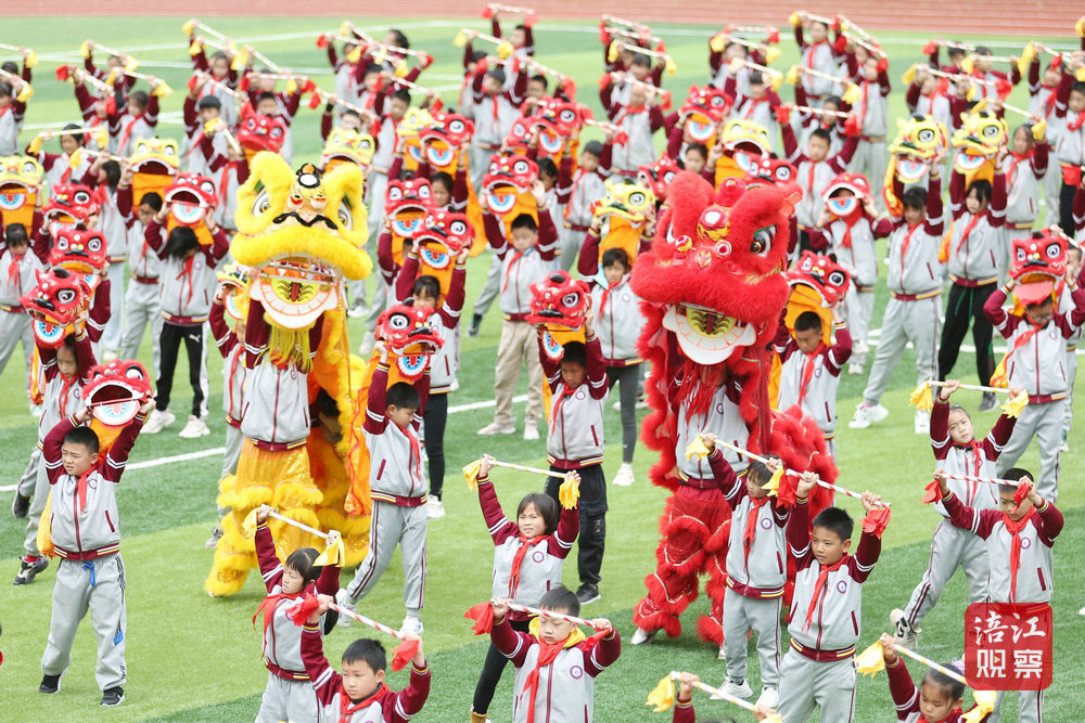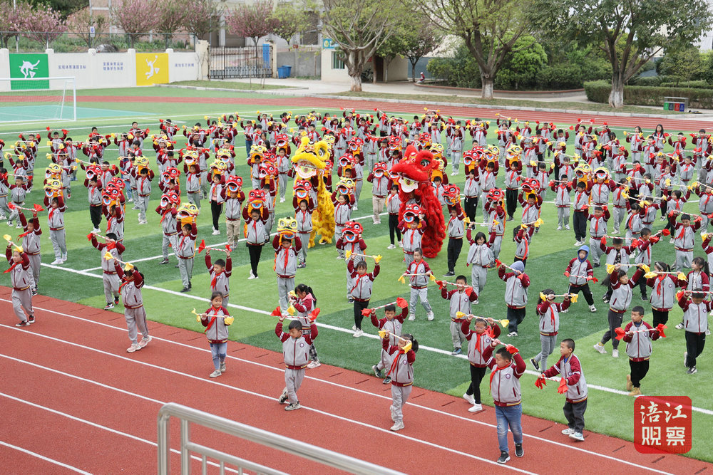 4月3日,綿陽市涪城區(qū)金峰小學(xué)400名師生在大課間操同時舞動獅子操,場面壯觀。