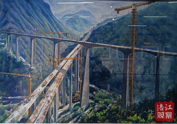 本次展覽共展出美術(shù)作品60件,其中由饒幫成獨(dú)立創(chuàng)作完成的繪畫(huà)作品40件,饒幫成與學(xué)生共同創(chuàng)作的舞美道具及手工藝作品20件。在40件美術(shù)作品中,作者以多樣的藝術(shù)視覺(jué)勾勒巴山蜀水的自然與人文,有迤邐的涪江風(fēng)情、秀美的九寨溝風(fēng)光、巴蜀大地的科技與人文、峽江的雄奇險(xiǎn)峻、山野的自然與生態(tài),每一幅作品都吸引了參觀(guān)者駐足,感受夢(mèng)戀的土地、人間的花舞、似水的行云和溜溜的情歌。