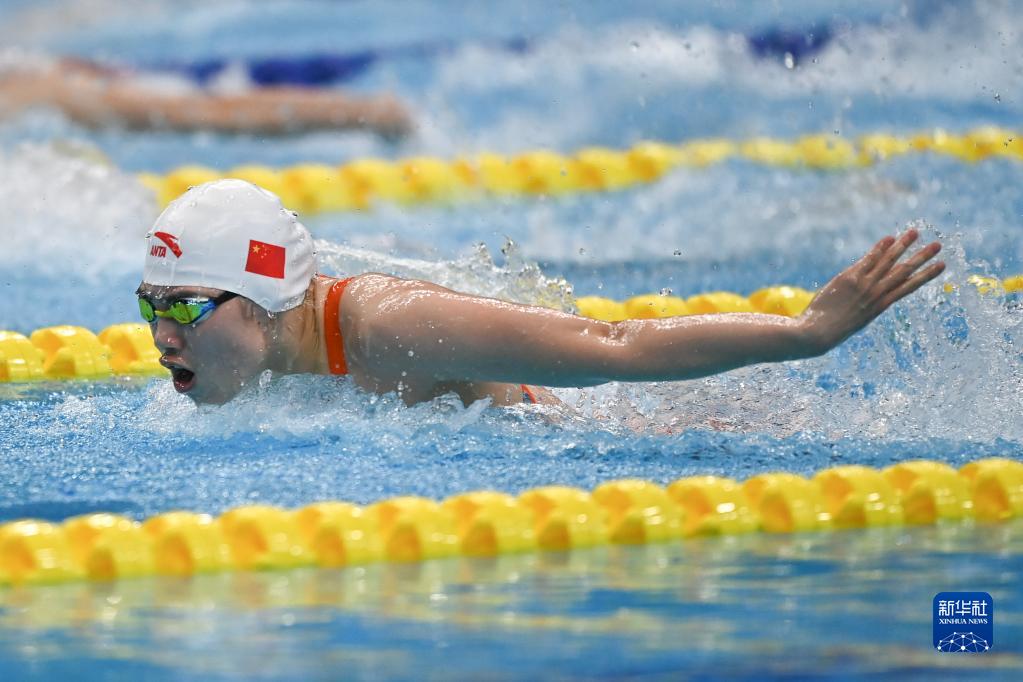 當(dāng)日,在浙江杭州舉行的“韻味杭州”2023年全國游泳冠軍賽女子100米蝶泳決賽中,江蘇卡爾美隊(duì)選手張雨霏以56秒48的成績獲得冠軍。