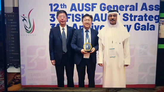 劉立新(中)當(dāng)選亞洲大體聯(lián)主席