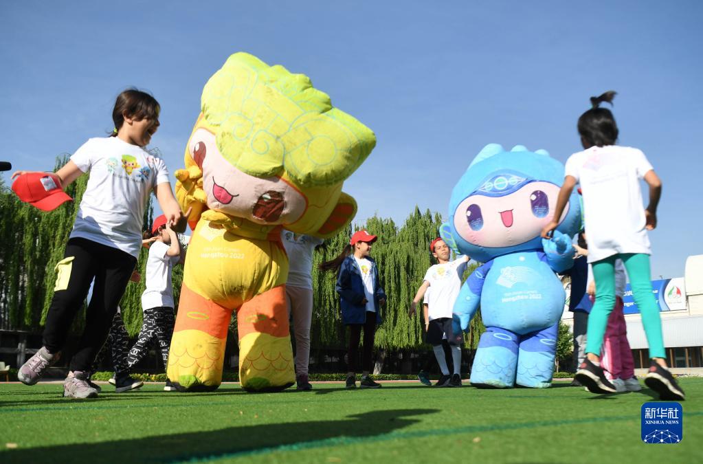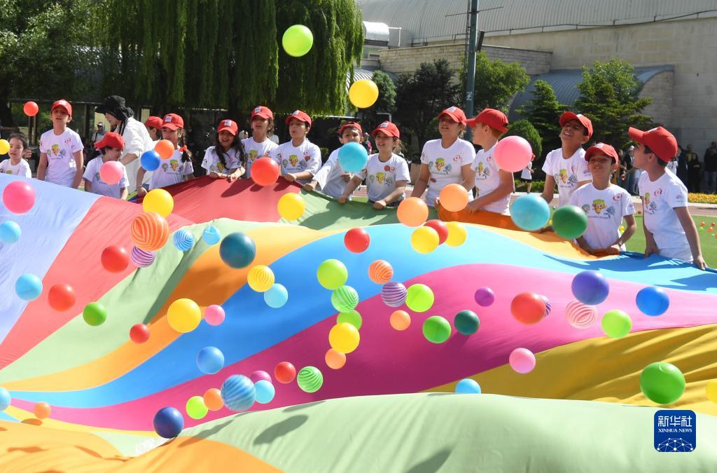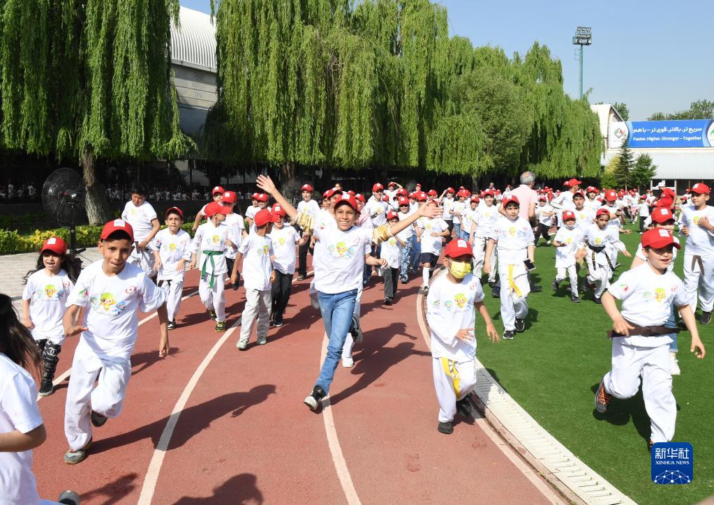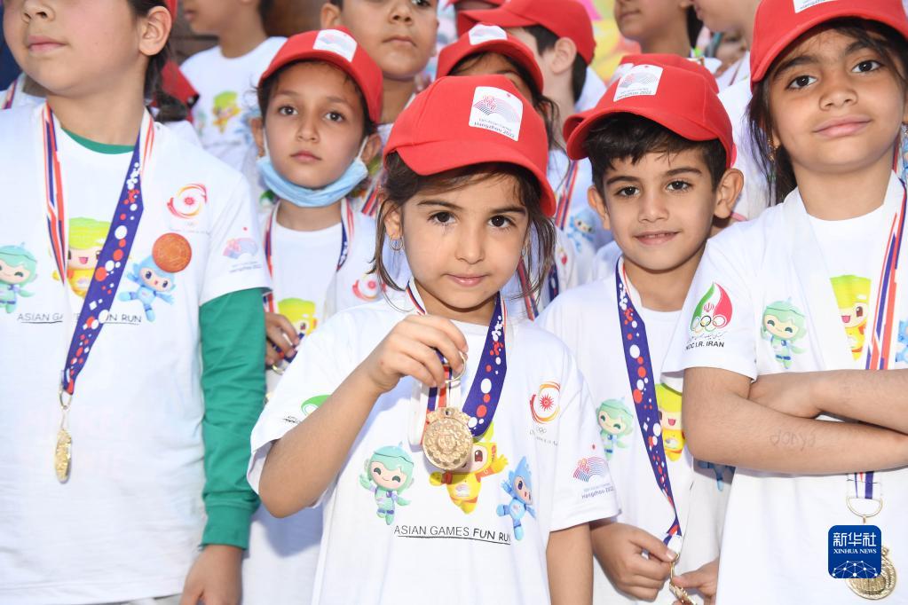 5月11日,在伊朗首都德黑蘭,小朋友們在參加“迎杭州亞運會趣味跑”伊朗站活動。新華社記者 沙達(dá)提 攝