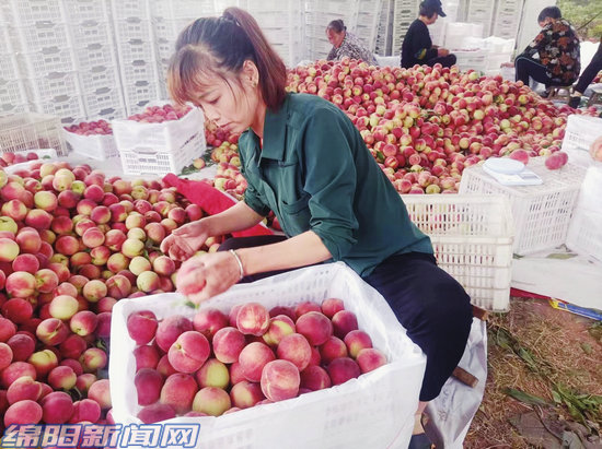 桃樹(shù)下,果農(nóng)們正忙著采摘,三輪車一趟趟將剛采摘下來(lái)的桃子拉回庫(kù)房。村民們忙碌而有序地進(jìn)行分揀、裝箱,一張張笑臉上洋溢著豐收的喜悅。在現(xiàn)場(chǎng)的客商們也迅速裝車,隨即將優(yōu)質(zhì)的桃子運(yùn)往成都、德陽(yáng)、重慶等地。
