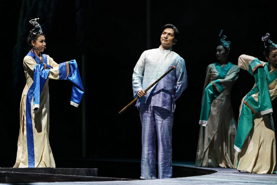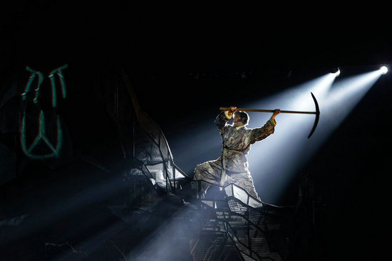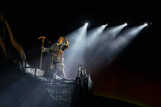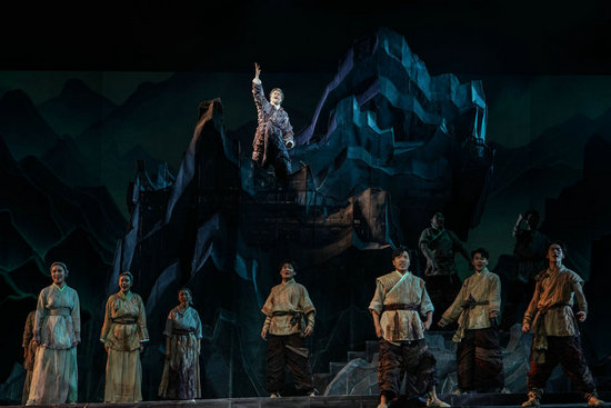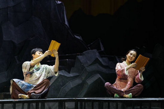 5月27日,大型說唱音樂劇《愚公移山》在位于北京的中央歌劇院首演。音樂劇《愚公移山》是2022年度河南省重點(diǎn)文藝創(chuàng)作項(xiàng)目,由濟(jì)源產(chǎn)城融合示范區(qū)黨工委宣傳部、文化廣電和旅游局出品,北京大學(xué)民族音樂與音樂劇研究中心創(chuàng)制。全劇采用說唱的藝術(shù)形式,以傳承和弘揚(yáng)愚公移山精神為線索,講述了當(dāng)代大學(xué)生將傳統(tǒng)文化納入現(xiàn)代視野,不斷打造新生活、開拓新境界的新時(shí)代奮進(jìn)故事。新華社記者 彭子洋 攝影報(bào)道
