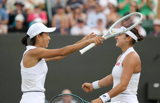 7月11日,張帥(左)/多勒海德在比賽后慶祝。新華社記者 李穎 攝