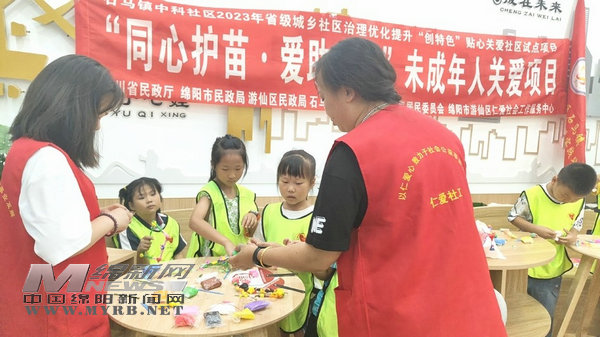 “跟上節(jié)奏!左右、左右……”近日,游仙區(qū)石馬鎮(zhèn)中科社區(qū)熱鬧非凡,在城鄉(xiāng)社區(qū)治理“創(chuàng)特色”工程拉練現(xiàn)場(chǎng),中科社區(qū)十多名小朋友在社工帶領(lǐng)下玩游戲。游戲結(jié)束后,孩子們還在社工的輔導(dǎo)下DIY手工作品,以此舒緩學(xué)習(xí)、心理壓力。