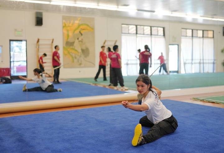 7月15日,美國加利福尼亞州舊金山灣區(qū),美國運動員朱迪·劉正在備戰(zhàn)成都第31屆世界大學(xué)生夏季運動會太極項目。新華社記者吳曉凌攝