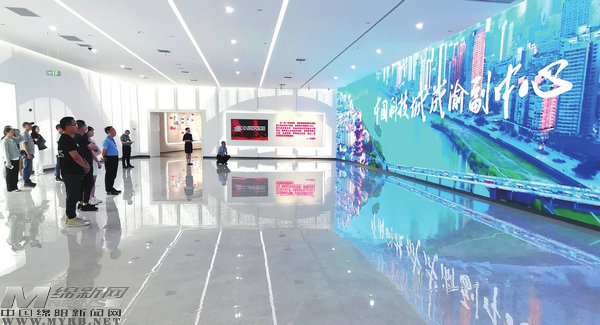 “行進(jìn)涪江·川渝九地高質(zhì)量發(fā)展媒體調(diào)研行”聯(lián)合采訪組記者采訪中國(guó)(綿陽(yáng))科技城創(chuàng)新館