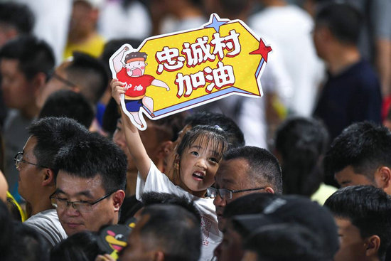 7月29日,一名小朋友在“村超”比賽現(xiàn)場為忠誠村球隊加油。新華社記者 楊文斌 攝