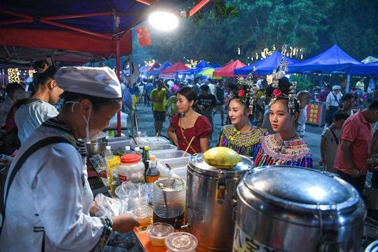 不僅是忠誠鎮(zhèn),“村超”足球場周圍的餐飲更加火爆。當(dāng)?shù)卣O(shè)置了燒烤區(qū)、特色小吃區(qū)、冷飲區(qū)、后備箱集市區(qū)等近2000個臨時免費攤位,讓榕江縣的夜間經(jīng)濟異軍突起。