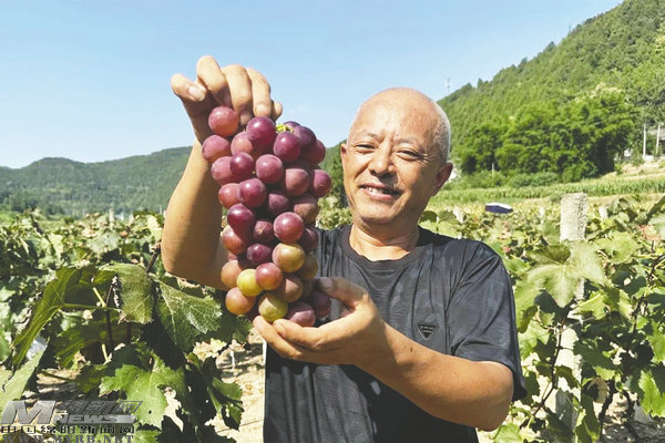 在回龍村葡萄種植戶李小兵的葡萄園里,一串串飽滿圓潤(rùn)的“巨峰”葡萄散發(fā)出陣陣醉人芳香,向果農(nóng)們傳遞著豐收的信號(hào)。提起今年的葡萄市場(chǎng)行情,李小兵語(yǔ)氣中充滿了興奮:“去年一斤葡萄2.5元,今年能賣到3.5元一斤,我今年種了4畝葡萄,每畝3000多斤的產(chǎn)量,現(xiàn)在賣了4萬(wàn)多元,全部賣完大概能收入5萬(wàn)多元。”