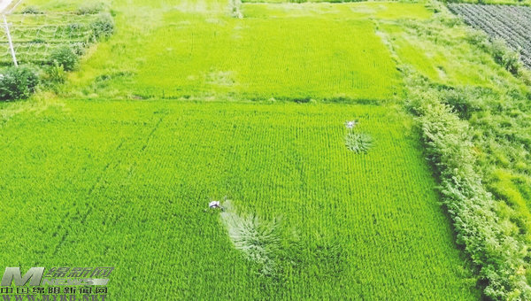 忠興鎮(zhèn)股份經(jīng)濟合作聯(lián)合總社生產(chǎn)部技術員吳濤介紹:“3000多畝水稻陸續(xù)進入破口抽穗期,我們正在噴灑破口藥,這是最關鍵的一次打藥,同時將增產(chǎn)、防病、治蟲的藥物一道打下去,既可以保證水稻的產(chǎn)量,品質(zhì)也更好。”