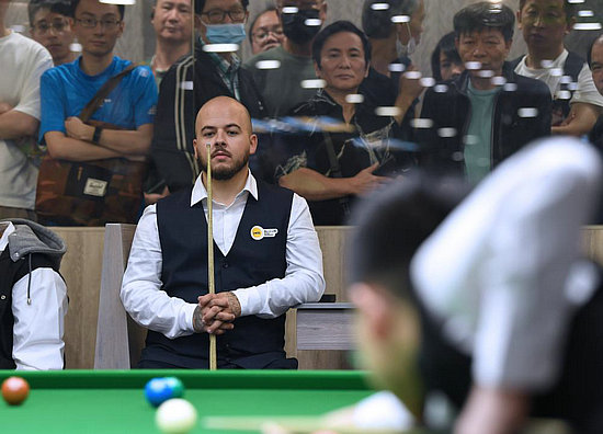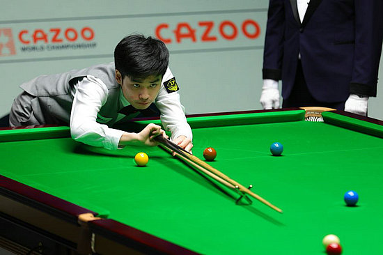 4月29日,斯佳輝在世界斯諾克錦標(biāo)賽半決賽中。新華社發(fā)(翟政攝)