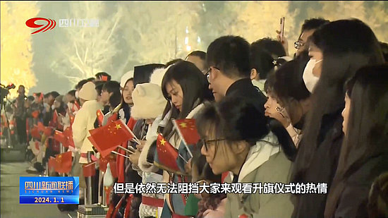 記者 石楚:現(xiàn)在是2024年1月1號(hào)早上的六點(diǎn)半,我們所在的位置是成都天府廣場(chǎng),雖然說今天早上的氣溫只有6攝氏度,但是依然無法阻擋大家來觀看升旗儀式的熱情。