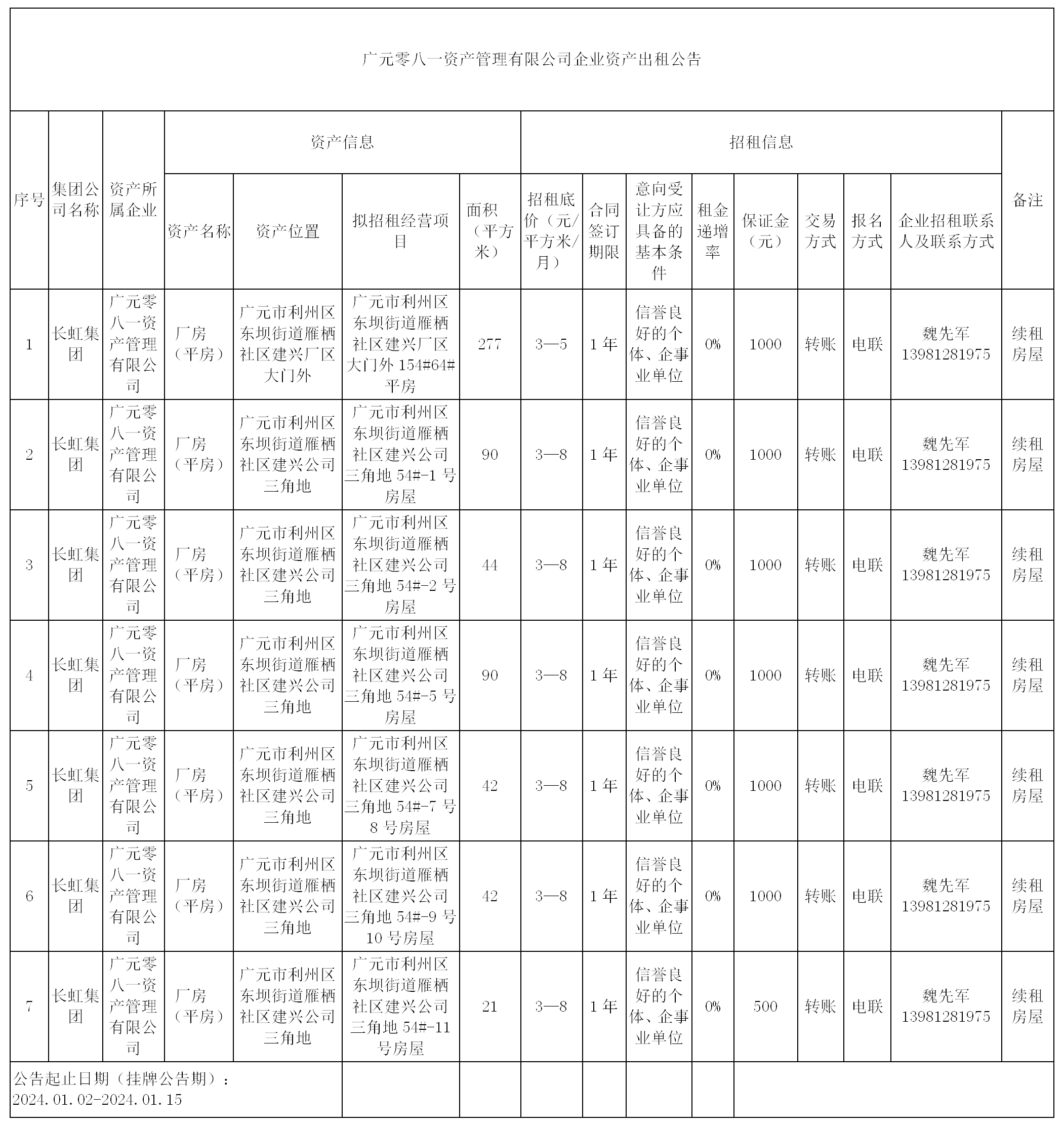 廣元零八一資產(chǎn)管理有限公司企業(yè)資產(chǎn)出租公告