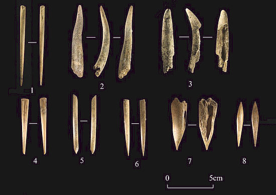 青池遺址第II發(fā)掘區(qū)出土的骨針、骨錐和骨角器(新石器時代)。天津市文化遺產(chǎn)保護(hù)中心供圖