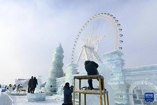 當(dāng)日,在哈爾濱冰雪大世界進行的第35屆中國·哈爾濱國際冰雕比賽進入第二天的賽程,來自世界各地的30余支參賽隊伍精心雕琢,盡顯哈爾濱冬季極寒之美。