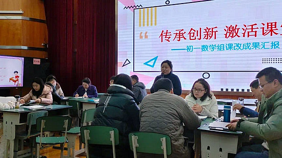 初一數(shù)學(xué)組蔣俊老師作課改成果匯報。蔣老師以“傳承創(chuàng)新 激活課堂”為主題,詳細(xì)闡述了初一數(shù)學(xué)組課改歷程,總結(jié)了在課改中的收獲,提出了課改中的一些困惑,倡導(dǎo)全體數(shù)學(xué)教師積極參與,共同探討。