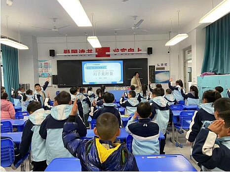 12月22日,綿陽市三江實驗學(xué)校邱明佳老師通過開展科學(xué)活動《用手來測量》,帶領(lǐng)一年級學(xué)生認(rèn)識了新的測量單位“一拃”。