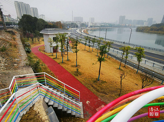 南河大橋南岸,地勢相對較高。這里一處新投用的口袋公園吸引不少市民駐足拍照。站在懸空的玻璃棧道上眺望對岸,水天一色的城市盡收眼底。七彩斑斕的欄桿,揚帆造型的休息室,處處彰顯城市活力。“真是個出片的好地方,山城橋融為一體,真有些網(wǎng)紅范兒。”兩名年輕人邊拍照邊說。
