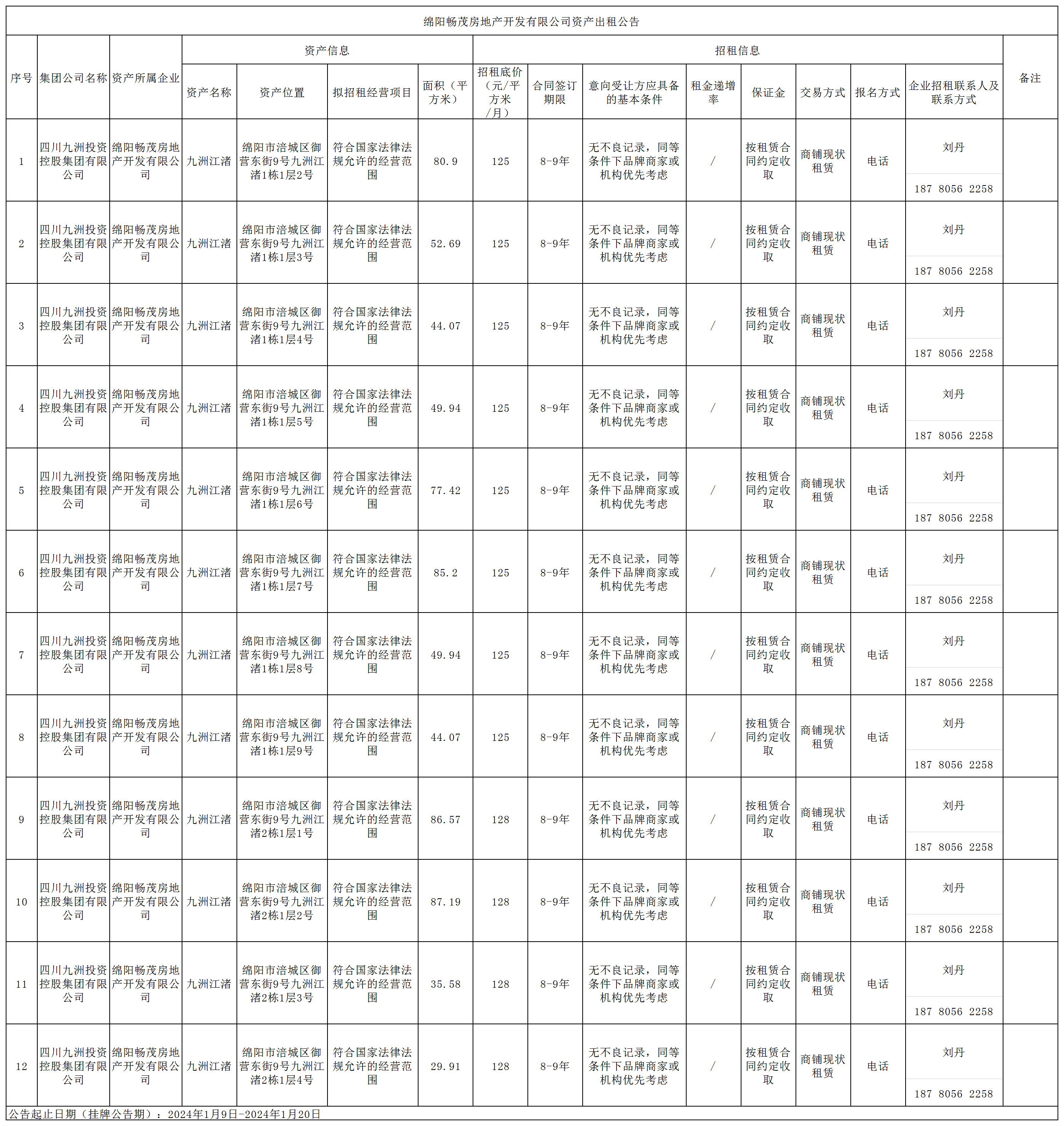 綿陽(yáng)暢茂房地產(chǎn)開發(fā)有限公司資產(chǎn)出租公告