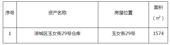 綿陽市糧油集團(tuán)有限公司營銷分公司現(xiàn)將公司代管位于涪城區(qū)玉女街29號(hào)倉庫資產(chǎn)面向社會(huì)進(jìn)行公開競(jìng)價(jià)招租(詳見競(jìng)租清單表),現(xiàn)將有關(guān)事宜公告如下: