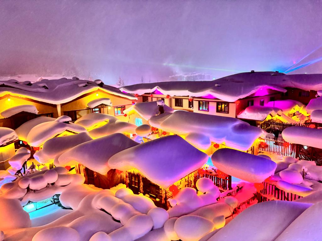 黑龍江省“中國雪鄉(xiāng)”景區(qū)夜景(1月12日攝)。新華社記者 劉赫垚 攝
