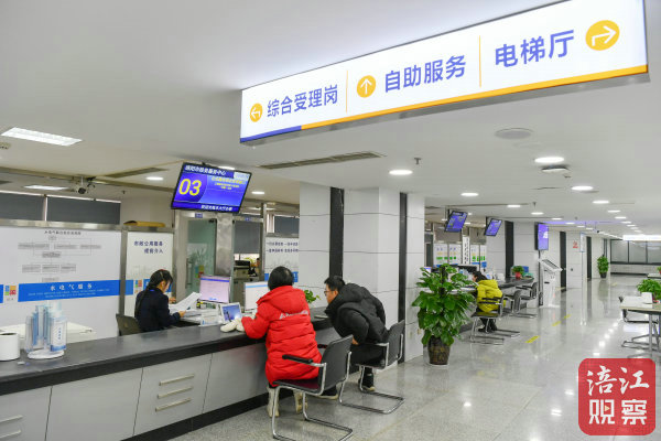 當(dāng)日10時(shí),市政務(wù)服務(wù)中心內(nèi)人頭攢動(dòng),市民們?cè)诠ぷ魅藛T的指引下有序地辦理相關(guān)業(yè)務(wù)。環(huán)顧四周,前臺(tái)綜合受理區(qū)、后臺(tái)分類(lèi)辦理區(qū)、休息等候區(qū)、自助填表區(qū)等區(qū)域分工明確,一旁,“窗口無(wú)否決權(quán)”服務(wù)機(jī)制的字眼也擺在了顯著位置。