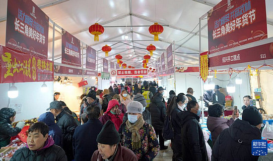 1月22日,在杭州西湖文化廣場(chǎng),市民在“長三角美好年貨節(jié)”上選購商品。