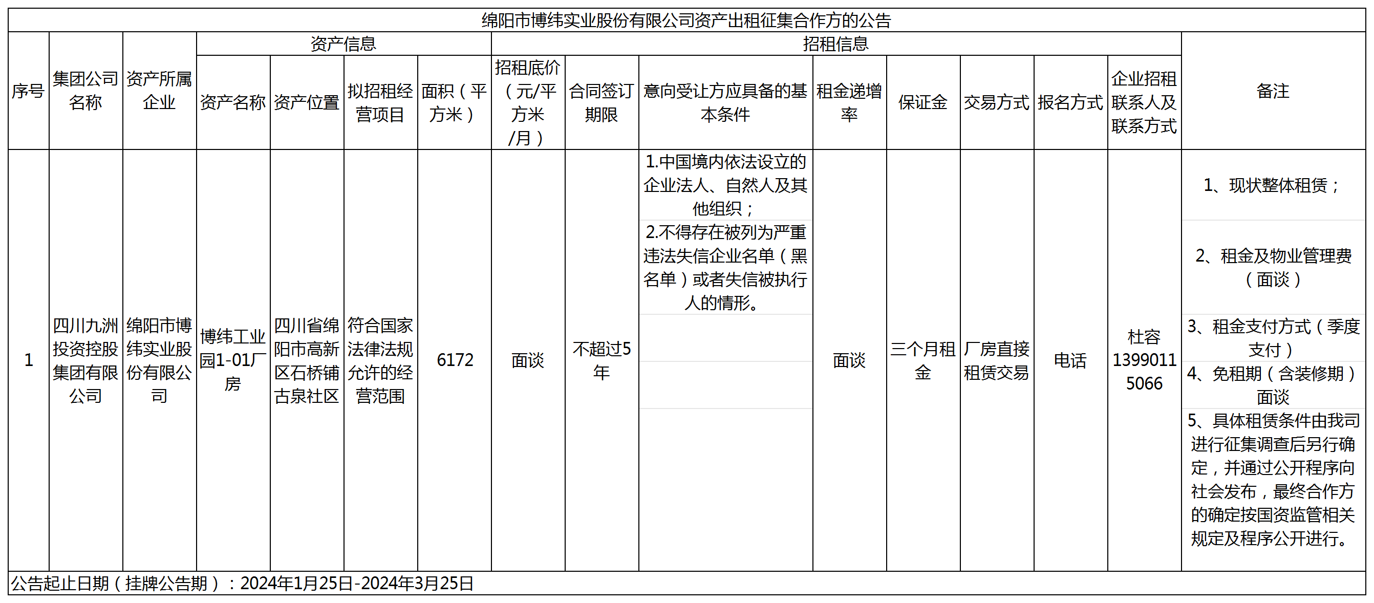 綿陽市博緯實(shí)業(yè)股份有限公司資產(chǎn)出租征集合作方的公告