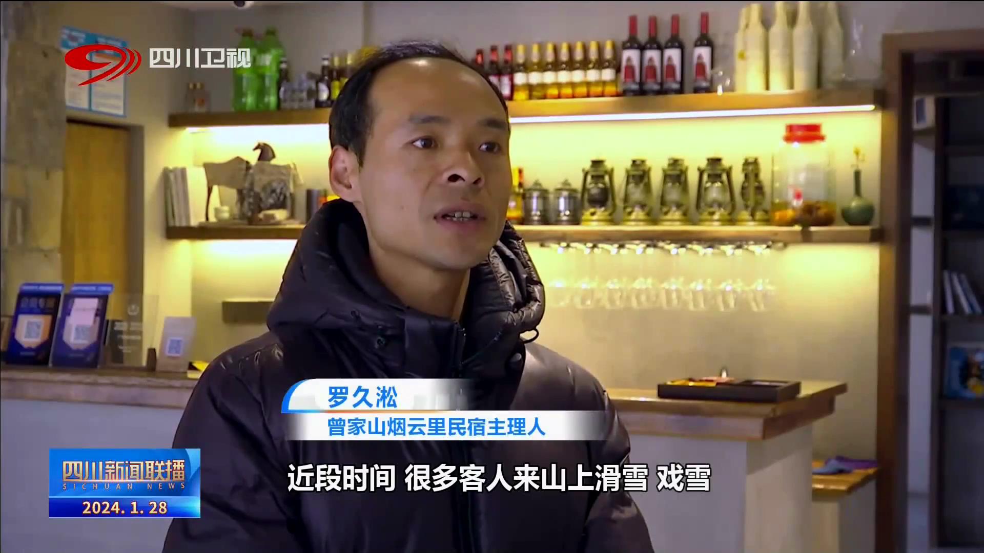 曾家山煙云里民宿主理人 羅久淞:近段時間,很多客人上山來滑雪、戲雪,過年期間的房間也已經(jīng)有客人開始預(yù)訂了,我們將推出具有曾家山特色的春節(jié)團(tuán)圓飯?zhí)撞偷南馈?/p>
