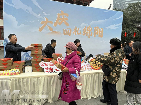 綿陽新聞網(wǎng)訊 1月29日上午,黑龍江大慶市文化廣電和旅游局及相關(guān)企業(yè)代表來綿“回禮”,在涪城區(qū)鐵牛廣場為綿陽市民免費發(fā)放特產(chǎn)美食,表演蒙古族特色歌舞。
