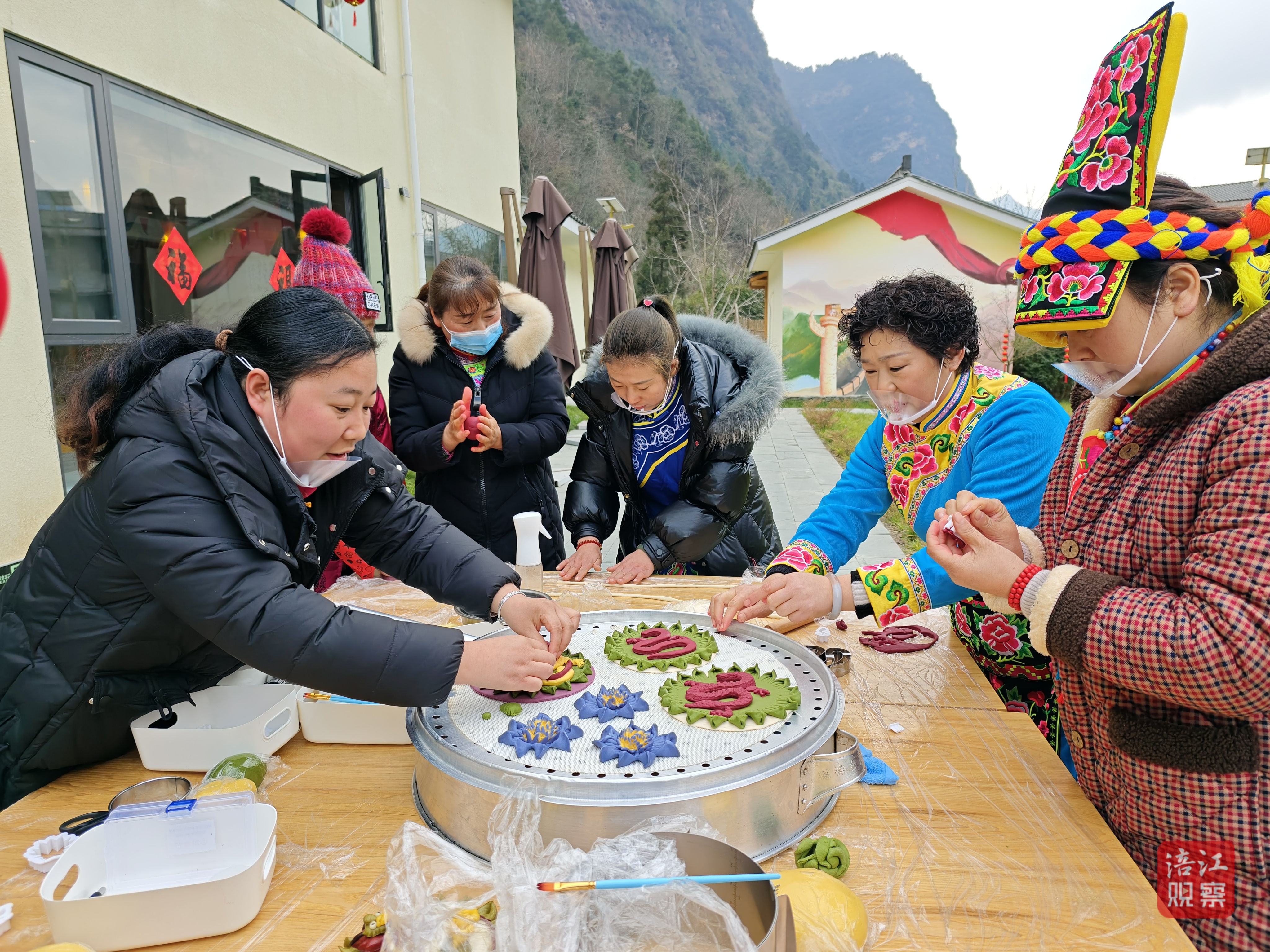 在北川,北川婦聯(lián)、陳家壩鎮(zhèn)黨委政府聯(lián)合開展“羌族鄉(xiāng)村過年味 花樣美食迎龍年”返鄉(xiāng)女性農(nóng)民工關愛慰問活動,30多名返鄉(xiāng)婦女身穿羌服,一起制作“龍”元素花饃,迎接龍年新春的到來。