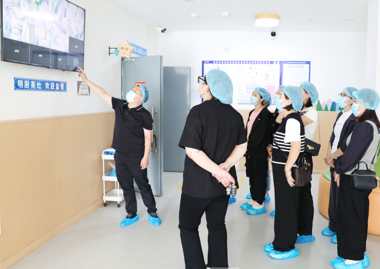 首先,黨支部書記龔蓉向家長(zhǎng)介紹了幼兒園膳食管理要求和模式。隨后,在黨支部副書記王太平的帶領(lǐng)下,家長(zhǎng)深入食堂內(nèi)部,查看食堂環(huán)境衛(wèi)生、硬件設(shè)施、食材貯藏以及食品加工流程,看到食堂整潔有序、食材新鮮安全以及工作人員專業(yè)嚴(yán)謹(jǐn),家長(zhǎng)們表示很放心幼兒在園就餐。