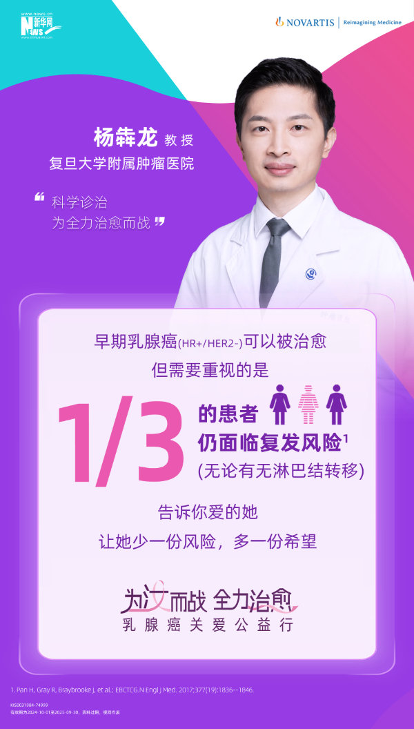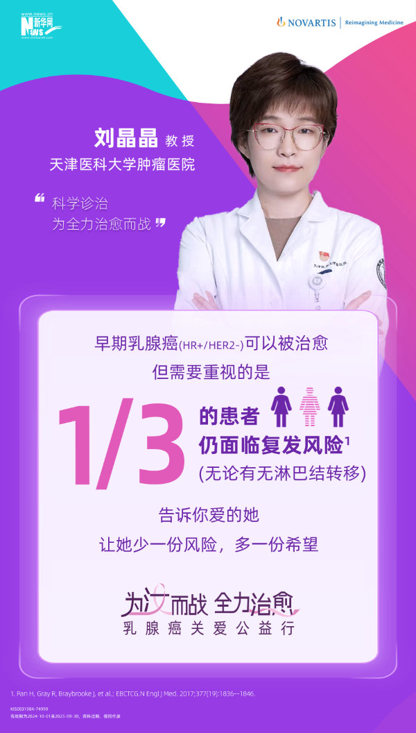 在10月世界乳腺癌防治月期間,新華網(wǎng)聯(lián)合諾華公司共同發(fā)起的“為汝而戰(zhàn),全力治愈”乳腺癌關(guān)愛公益行項(xiàng)目將在上海舉行。活動期間,五位乳腺癌防治領(lǐng)域?qū)<?mdash;—天津醫(yī)科大學(xué)腫瘤醫(yī)院張瑾教授、浙江大學(xué)醫(yī)學(xué)院附屬第二醫(yī)院黃建教授、中國醫(yī)學(xué)科學(xué)院腫瘤醫(yī)院袁芃教授、天津醫(yī)科大學(xué)腫瘤醫(yī)院劉晶晶教授以及復(fù)旦大學(xué)附屬腫瘤醫(yī)院楊犇龍教授將共同出席并圍繞“早期乳腺癌科學(xué)防治與復(fù)發(fā)風(fēng)險(xiǎn)管理”方面展開深入討論。