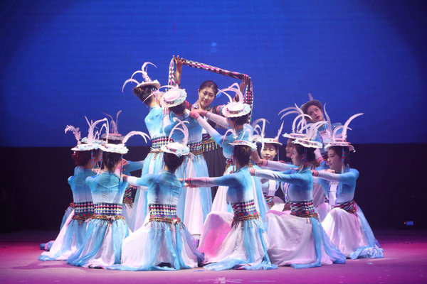 在最后的“潤(rùn)之聲”美育文化節(jié)成果匯報(bào)展演中,通過(guò)精選全院學(xué)生書(shū)法、器樂(lè)、舞蹈、歌唱等美育項(xiàng)目中的部分精品節(jié)目,全方位展現(xiàn)了學(xué)院學(xué)子的美育素養(yǎng)。漢語(yǔ)國(guó)際教育學(xué)生書(shū)法作品展示,配合藝術(shù)團(tuán)帶來(lái)的古箏表演,給現(xiàn)場(chǎng)營(yíng)造了一種高山流水、古色古香的氛圍;音樂(lè)表演專(zhuān)業(yè)學(xué)生將第十屆大學(xué)生藝術(shù)展演活動(dòng)獲獎(jiǎng)舞蹈作品《母親的花腰帶》再次搬上舞臺(tái),精湛唯美的表演帶現(xiàn)場(chǎng)觀眾領(lǐng)略動(dòng)人的羌族民俗文化;學(xué)院青年歌唱家唐翰章老師攜手學(xué)生演唱《領(lǐng)航》,高亢激昂的歌聲激人奮進(jìn)。