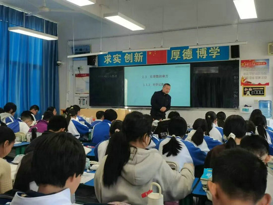凌敏和何東華老師聽了兩位老師的數(shù)學(xué)課,第一節(jié)是數(shù)學(xué)組長張建兵老師初一、一班的“有理數(shù)乘方”,張建兵在有理數(shù)的乘方教學(xué)中,給出學(xué)生需要理解乘方、冪、底數(shù)和指數(shù)的概念,并能正確進(jìn)行有理數(shù)的乘方運(yùn)算,他通過實(shí)例引導(dǎo)學(xué)生理解乘方的概念,并通過大量練習(xí)幫助學(xué)生掌握運(yùn)算方法?;第二節(jié)課是初一、二班新教師黃鈺瓊的“試卷評講”課,她從錯誤率較高的題目入手,先展示錯題,引出相關(guān)知識點(diǎn),對相關(guān)知識體系進(jìn)行復(fù)習(xí)整理并鞏固,然后學(xué)生分析失分原因并現(xiàn)場訂正錯題,通過分析、講解說出正確答案。黃老師用親切自然的教態(tài),專業(yè)扎實(shí)的基本功,呈現(xiàn)了一堂精彩紛呈的課例。兩位老師先肯定了老師們辛苦的付出所取得的成績;也就教學(xué)中存在的問題,作了坦誠的交流并提出了希望:在今后的課堂教學(xué)中,做好反饋驗(yàn)收,做到分層教學(xué),分層推進(jìn),分層達(dá)標(biāo),讓所有的孩子學(xué)數(shù)學(xué),會學(xué)數(shù)學(xué),愛學(xué)數(shù)學(xué)。