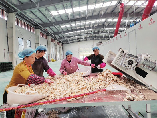 平武縣引進(jìn)的加工企業(yè),正對(duì)魔芋進(jìn)行烘干、切片等初加工。