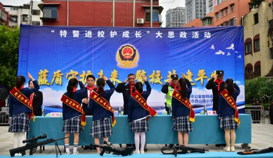 為了厚植愛(ài)國(guó)主義情懷,全面深入貫徹加強(qiáng)未成年人思想道德建設(shè),進(jìn)一步增強(qiáng)廣大師生的安全防范意識(shí),提高應(yīng)對(duì)突發(fā)事件和自我保護(hù)的能力,有力推進(jìn)平安校園建設(shè),10月29日上午,綿陽(yáng)市西山路小學(xué)攜手綿陽(yáng)市特巡警支隊(duì),開(kāi)展了以“藍(lán)盾守護(hù)未來(lái) 警校共建平安”為主題的2024年秋特警進(jìn)校護(hù)成長(zhǎng)大思政活動(dòng)。