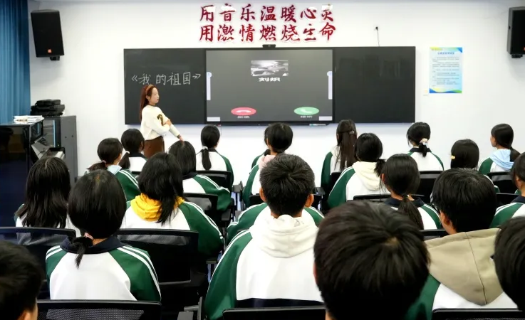 音樂是心靈的語言。那悠揚(yáng)的旋律、動(dòng)人的歌詞,仿佛一把鑰匙,打開了我們情感的大門。在蘆溪中學(xué)博雅樓,《我的祖國(guó)》音樂思政課精彩紛呈。思政教育如春風(fēng)化雨,滋潤(rùn)心靈,每一個(gè)音符都在激發(fā)著學(xué)生們的愛國(guó)情懷。同學(xué)們?cè)谝魳分懈形虺跣?,汲取奮進(jìn)力量。