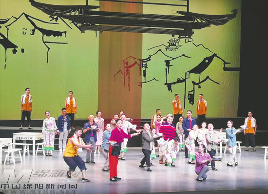 綿陽原創(chuàng)大型現(xiàn)代川劇《文昌第一?!穮⒓拥诹鶎么▌」?jié)暨四川省第二屆川劇匯演集中展演。圖為演出劇照。