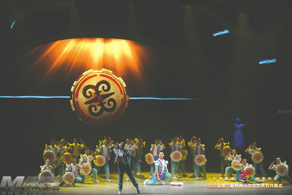 在四川省第三屆殘疾人文化藝術節(jié)上,涪城特校聽力障礙兒童表演的《心鼓》