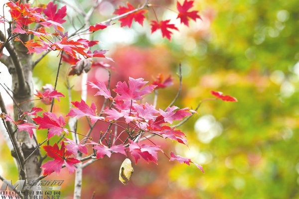 湖畔蒹葭,蘆花似雪;紅葉盡染,倒映如畫。