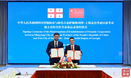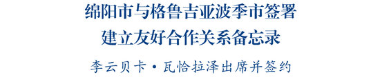綿陽(yáng)新聞網(wǎng)訊 11月11日,綿陽(yáng)市與格魯吉亞波季市簽署建立友好合作關(guān)系備忘錄。綿陽(yáng)市委副書(shū)記、市長(zhǎng)李云,波季市市長(zhǎng)貝卡·瓦恰拉澤分別代表雙方簽約并致辭,波季市議會(huì)主席亞歷山大·特克布查瓦出席并見(jiàn)證簽約。